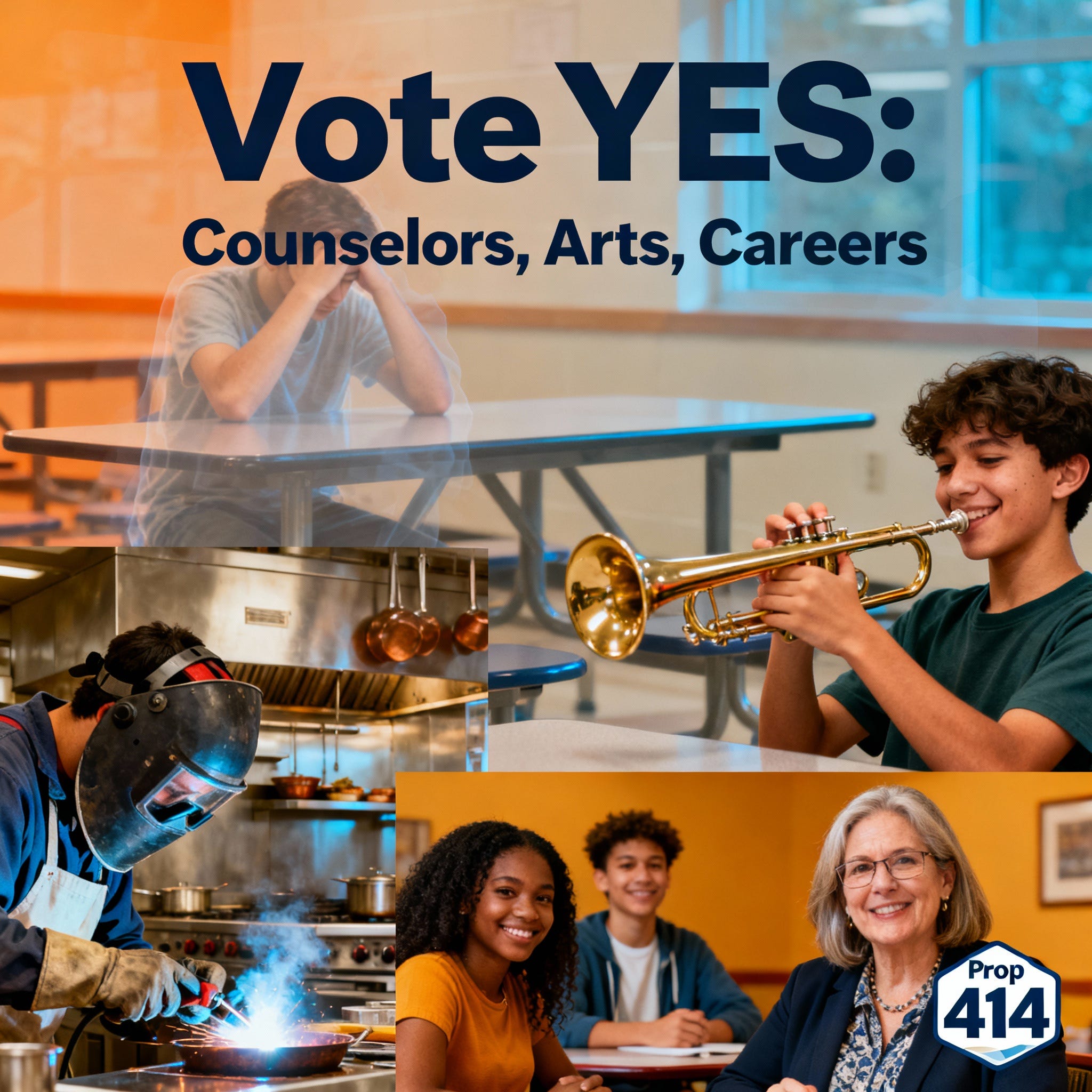 ✅ Prop 414 override = $45M annually to fund $3,000 teacher raises EVERY YEAR for 5 years, plus counselors, PE, music, and arts programs — costs homeowners ~$200/year on a $200K home